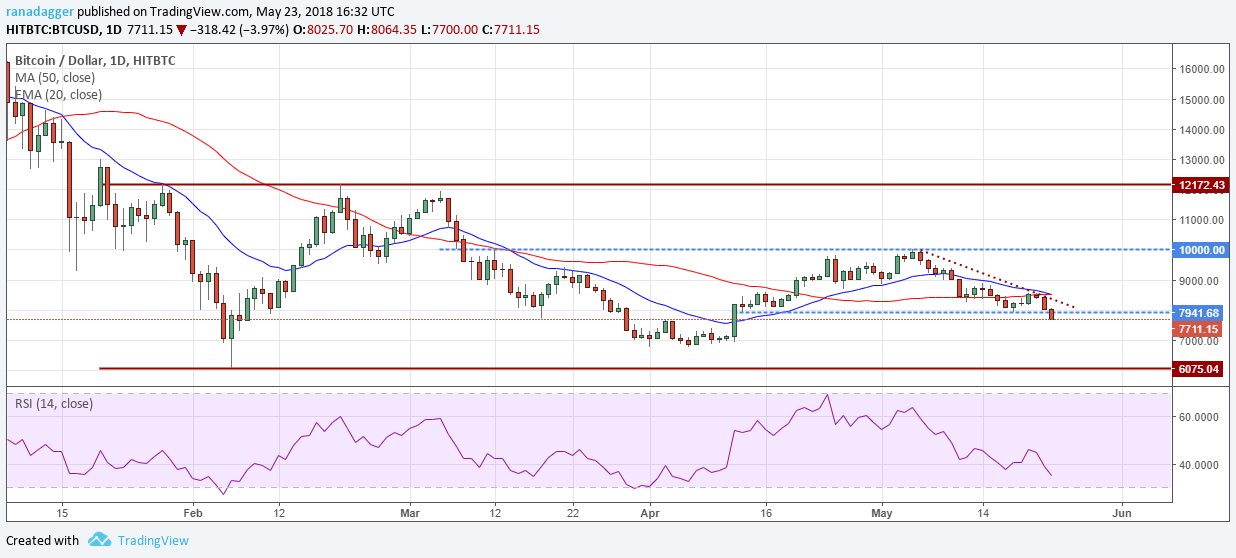 The best approach is to wait and watch for a couple of days. If the BTC/USD pair breaks down of the support and sustains below $7,900, you shouldn’t buy.