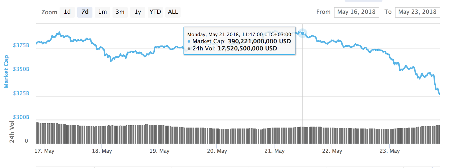 At the press time, top nine digital currencies are in the red, with the market capitalization down to less than $330 billion, compared to $390 billion just a couple of days back.