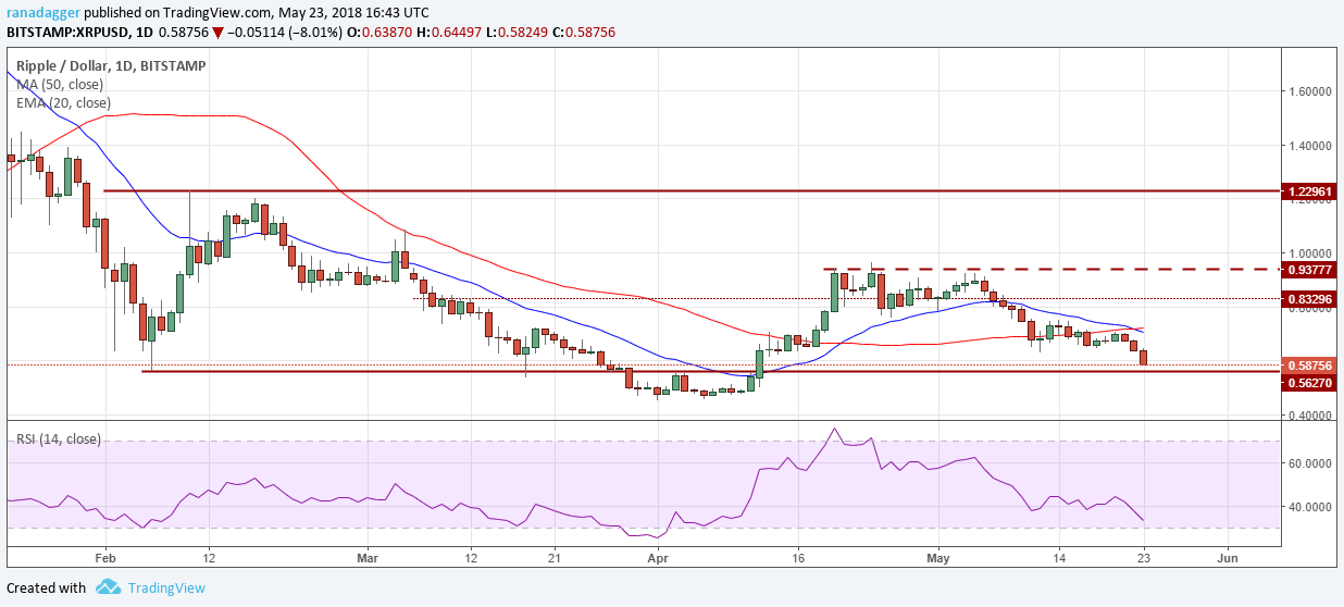 We believe that the bulls will again attempt to defend the $0.56 levels. If the lows hold, traders can expect the XRP/USD pair to rally to $0.93 and then to $1.22 levels in the medium term.