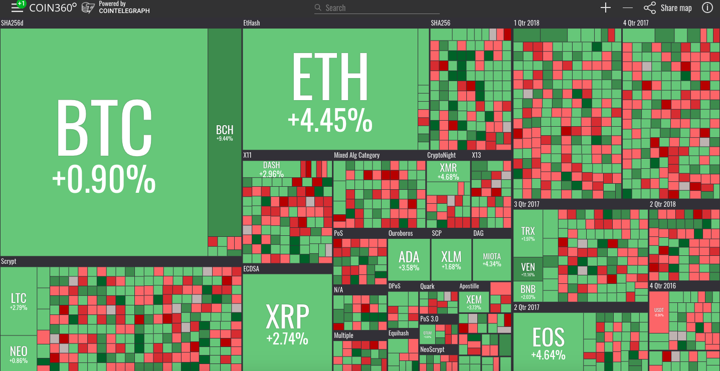 Total crypto market capitalization is currently just under $353 bln, having gained around $25 bln, or 8 percent over the past 7 days.