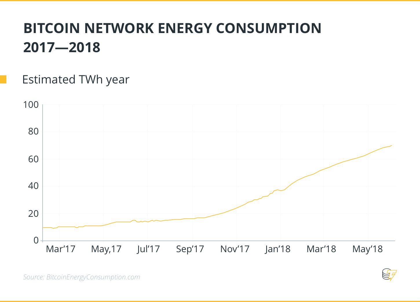 The Bitcoin network currently consumes about 2.55 gigawatts (GW) of electricity per year; to put that into perspective, the entire country of Ireland has an average electricity consumption of 3.1 GW, and Austria has an average electricity consumption of 8.2 GW per year. Over the past year, the estimated amount of TwH that the Bitcoin network consumes per year increased 413.37 percent. When compared to countries like the Czech Republic, the Bitcoin network uses 102.3 percent of the entire electricity consumed by the country per year.