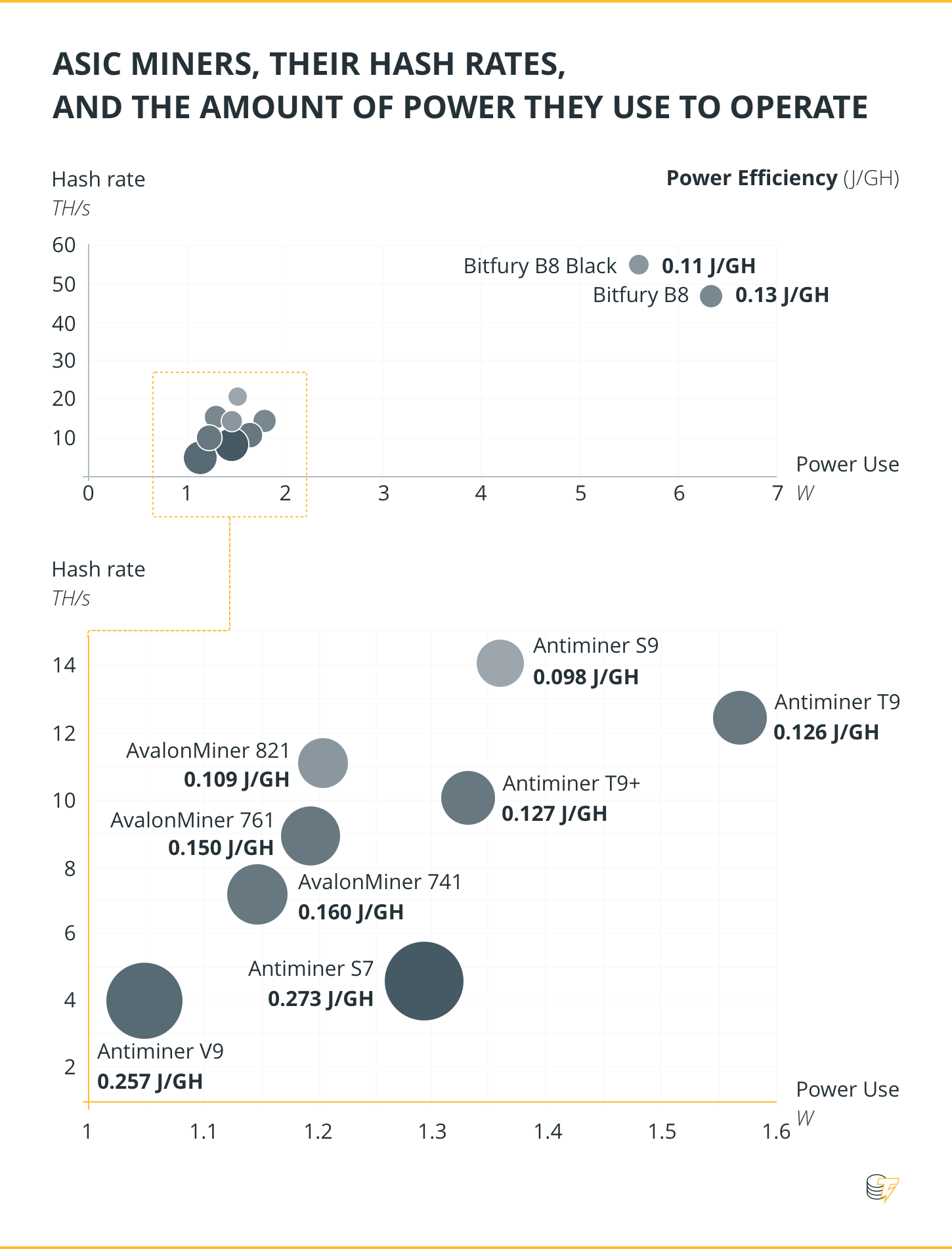 The amount of energy mining consumes seems to be increasing. As mining equipment becomes better at solving blocks, the electricity consumed by each mining rig increases. To stay ahead of their competitors, miners are always looking for mining equipment with a higher hashrate. The hashrate is the speed at which the miner is able to provide answers to the math problem. The higher the hash rate, the faster one can guess the answer to the problem.
