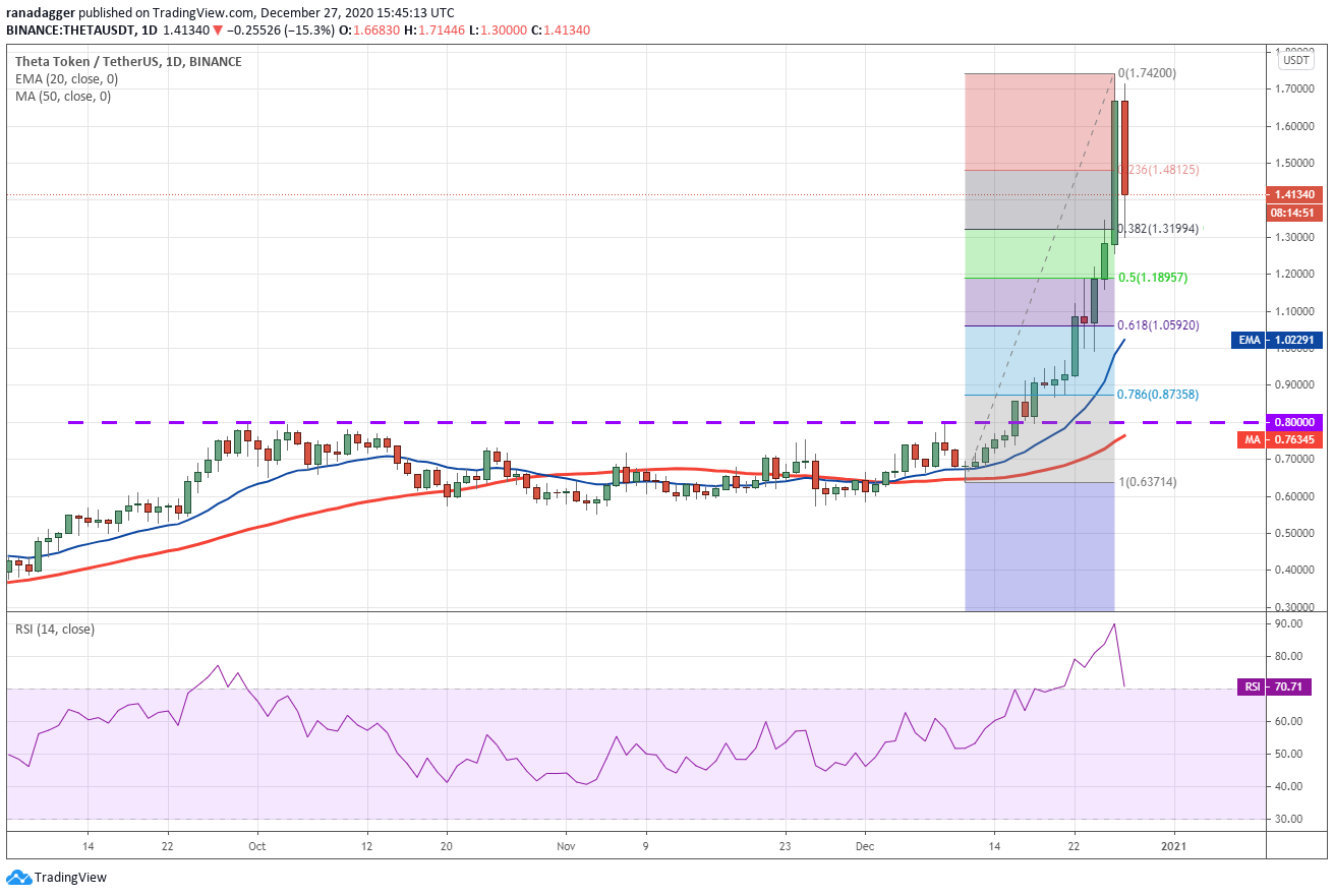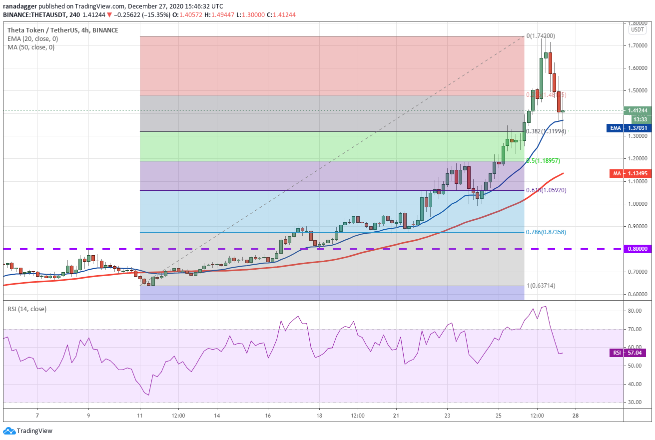 If the bulls can push the price above $1.742, the THETA/USD pair could rally to the $2 psychological level and then to $2.40.