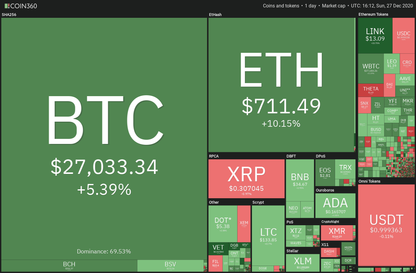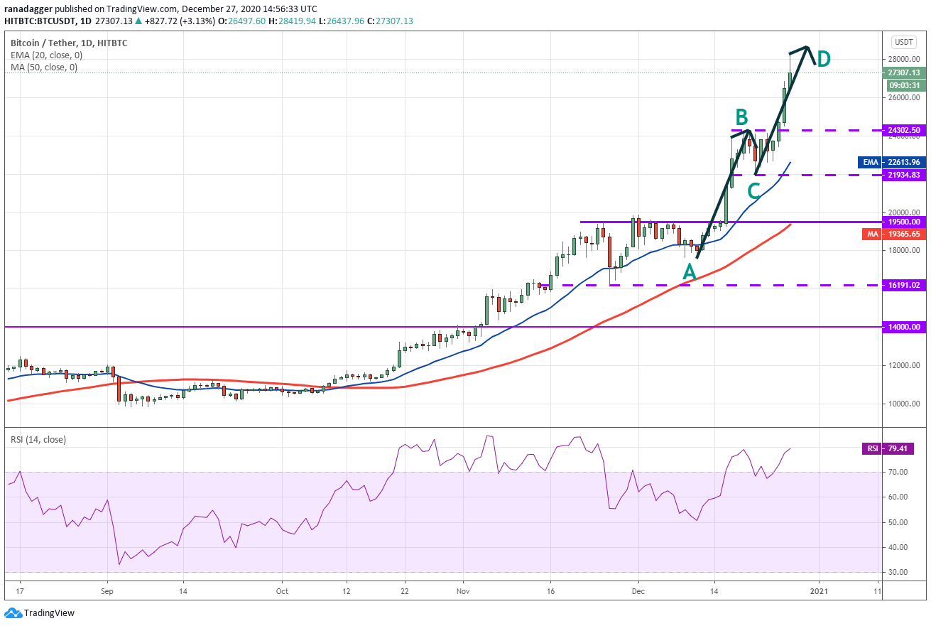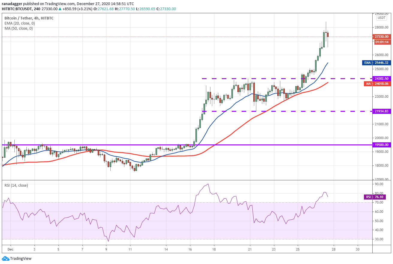 However, if the bulls fail to propel the price above $28,419.94, the selling may continue and that could pull the price down to the 20-EMA at $25,446. The overbought levels on the relative strength index also point to a possible correction.