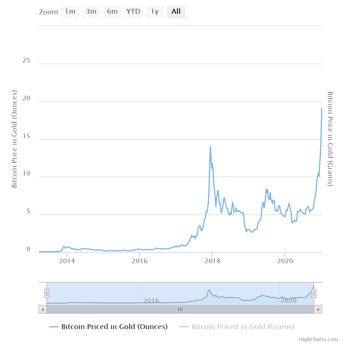 Even JPMorgan Chase has acknowledged that Bitcoin is taking market share from gold, the traditional haven asset. On Friday, one Bitcoin was worth more than 22 ounces of gold, which represents a new all-time high.