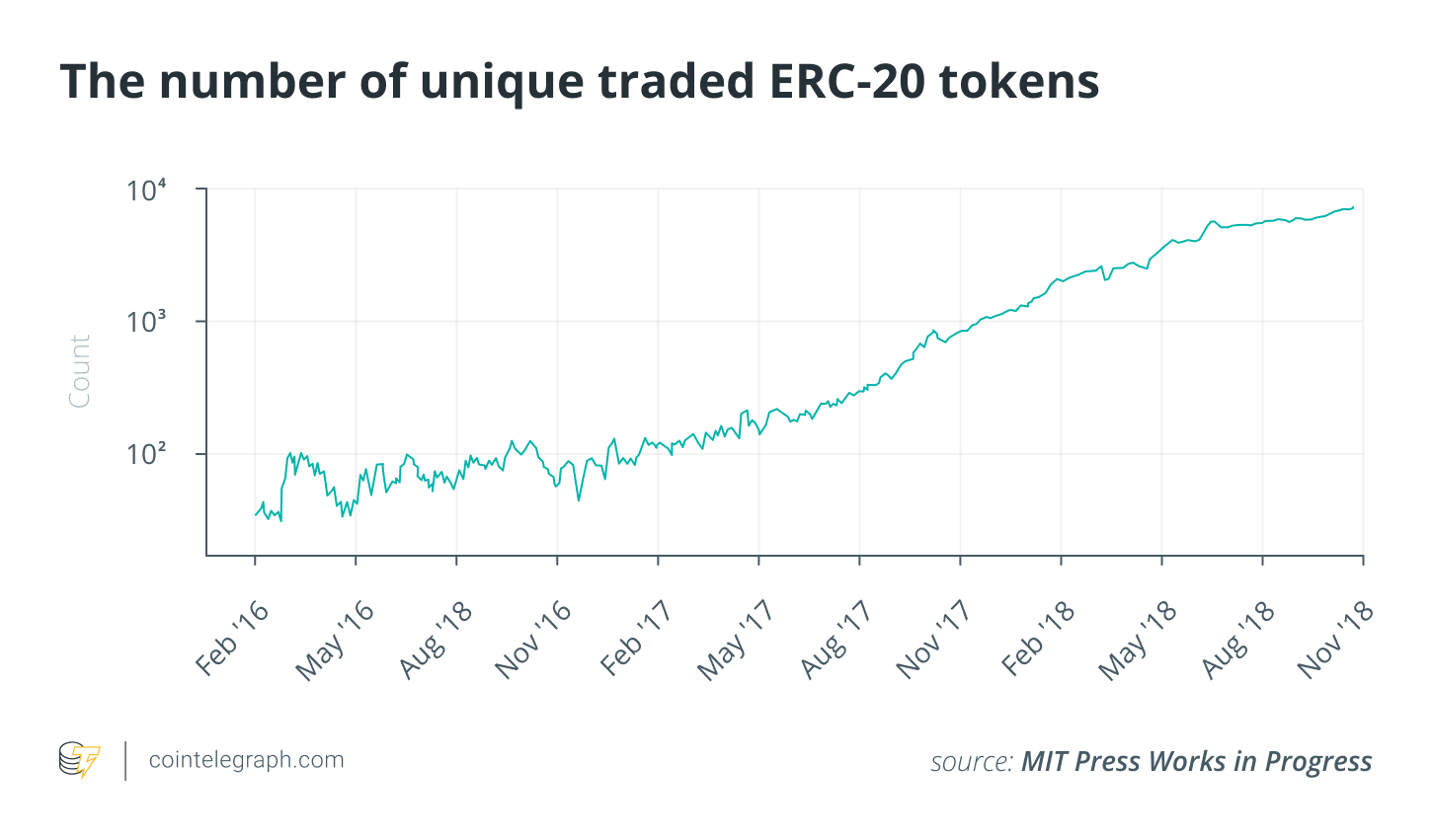Ethereum is the number-one platform for building blockchain projects and launching decentralized applications. The chart below displays the number of unique ERC-20 tokens traded during the first years since the launch of the Ethereum network. And despite the fact that the rate of expansion of the market for blockchain startups has slowed down since the initial coin offering bubble burst in 2018, their total number is still growing.