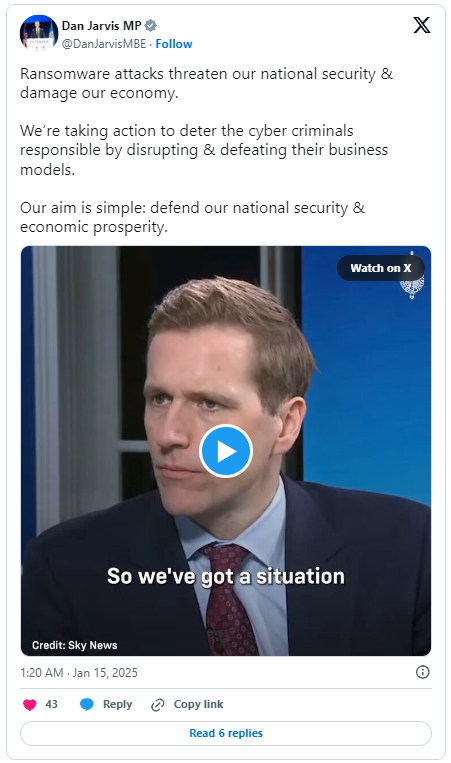 UK Security Minister Dan Jarvis said the goal is to protect national security by cutting off cyber criminals from ransomed funds. Many ransomware attackers ask for cryptocurrency payments.