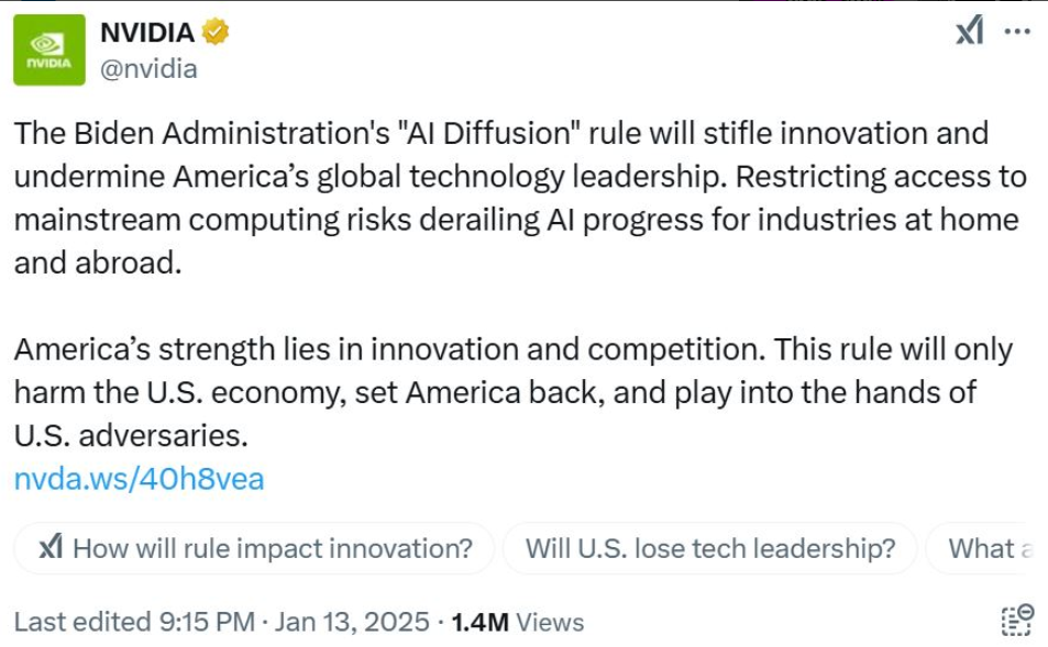 Microchip giant Nvidia’s vice president of government affairs says the new framework will hurt America’s global competitiveness and undermine innovation.