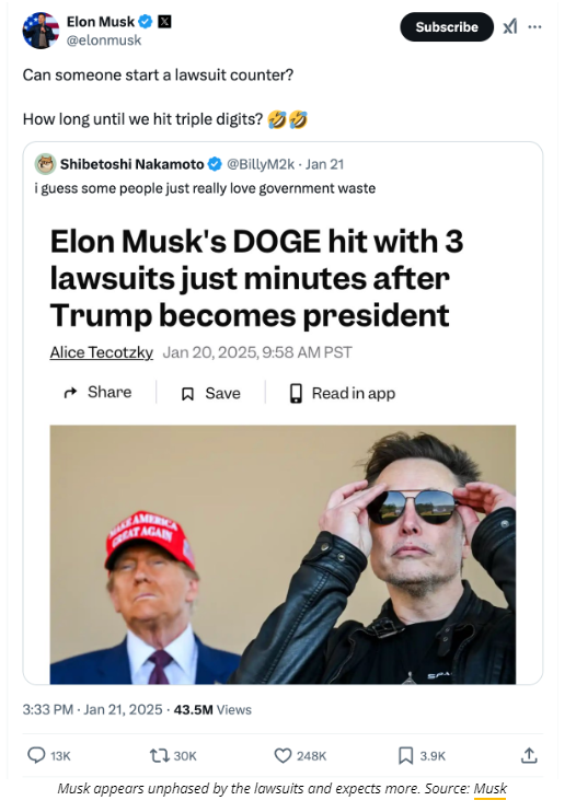 The US Department of Government Efficiency (DOGE) is facing a slew of lawsuits right out of the gate, but the speed at which President Donald Trump’s administration is moving could hamper the effectiveness of legal challenges.