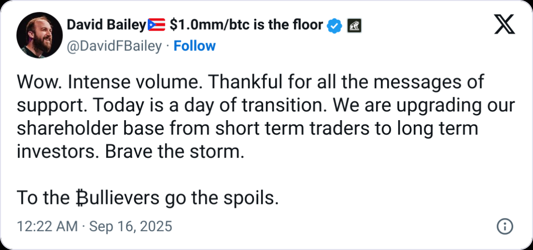 Shares in the Bitcoin-buying firm KindlyMD dropped 55% after CEO David Bailey encouraged low-conviction traders to exit.