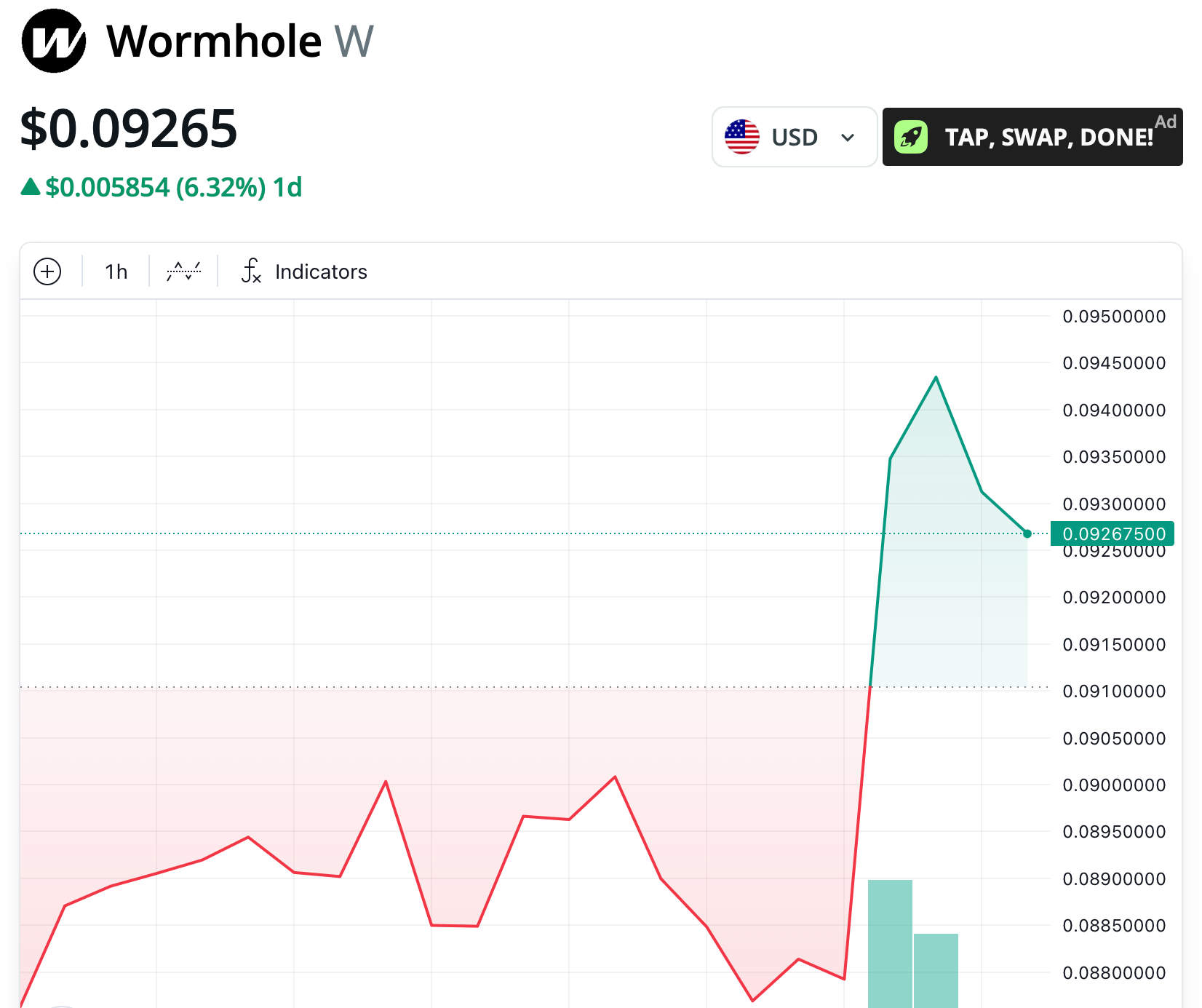 Wormhole token price on Sept. 17, 2025. Source: