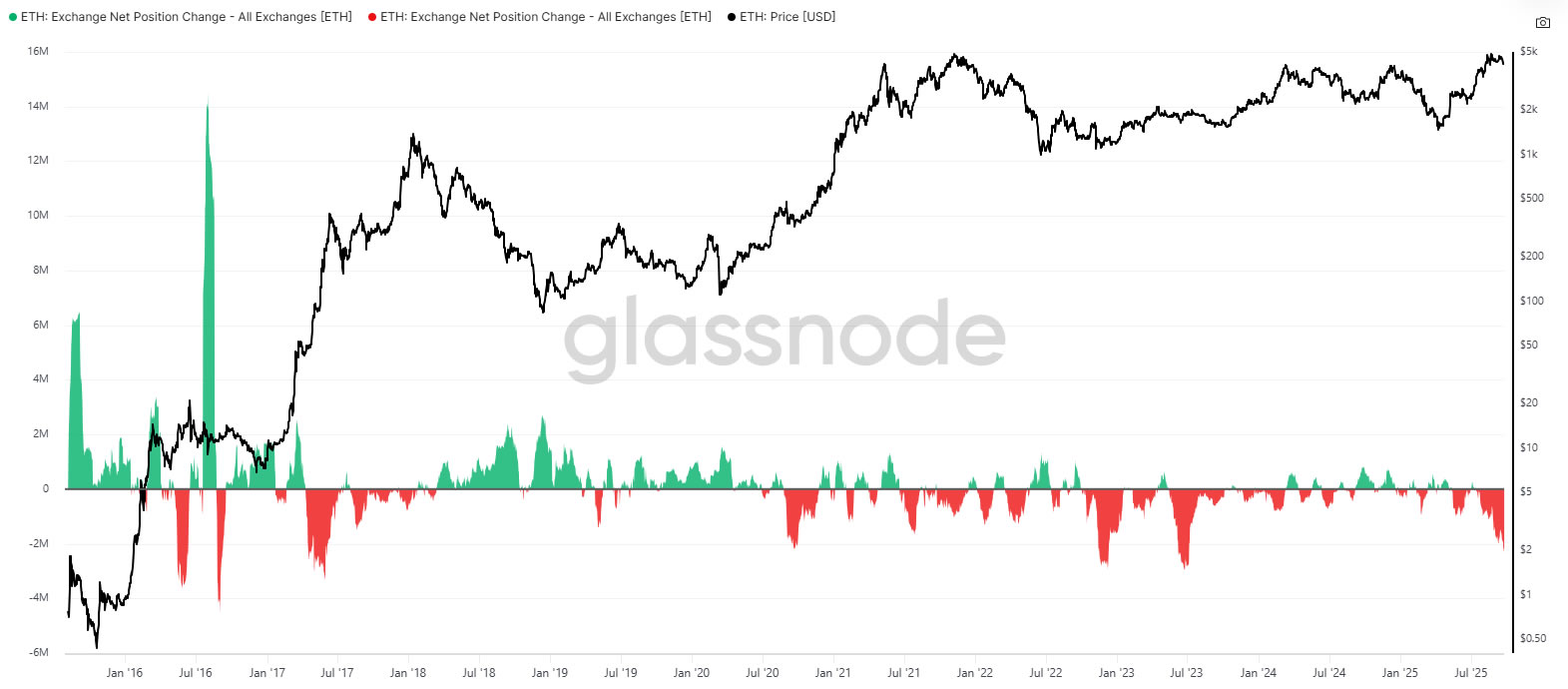 Exchange net position change tops -2 million ETH. Source: Glassnode