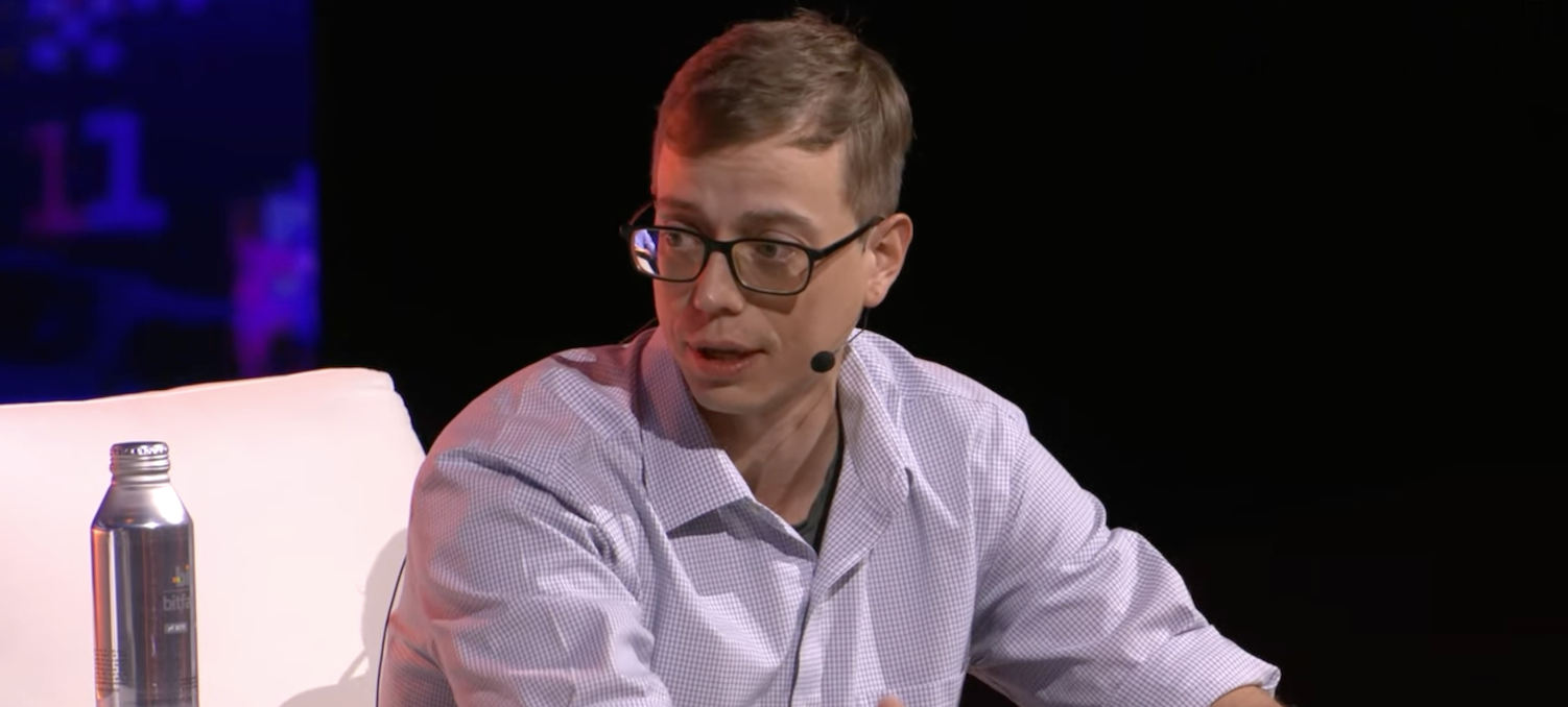 Ben Gagnon speaking on stage at a Las Vegas Bitcoin conference in April. Source: YouTube