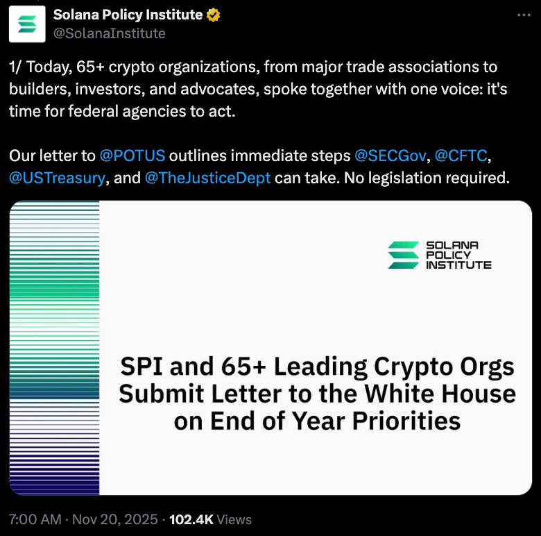 In a letter to Trump dated Thursday and shared with Cointelegraph, advocacy organizations including the Solana Policy Institute, Blockchain Association and DeFi Education Fund, among others, made several requests regarding crypto-related policies.