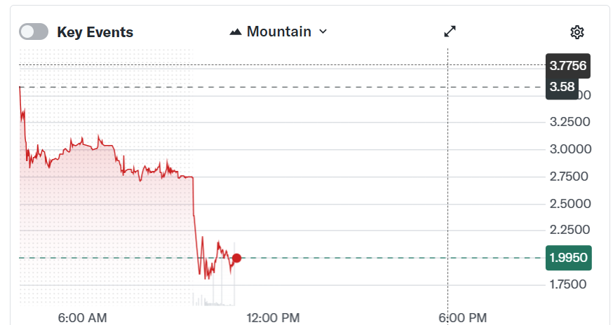 The shares are now down roughly 78% from their post-listing high of $9.31 on Sept. 9, underscoring the broad unwinding across the digital-asset sector and its spillover into related equities.
