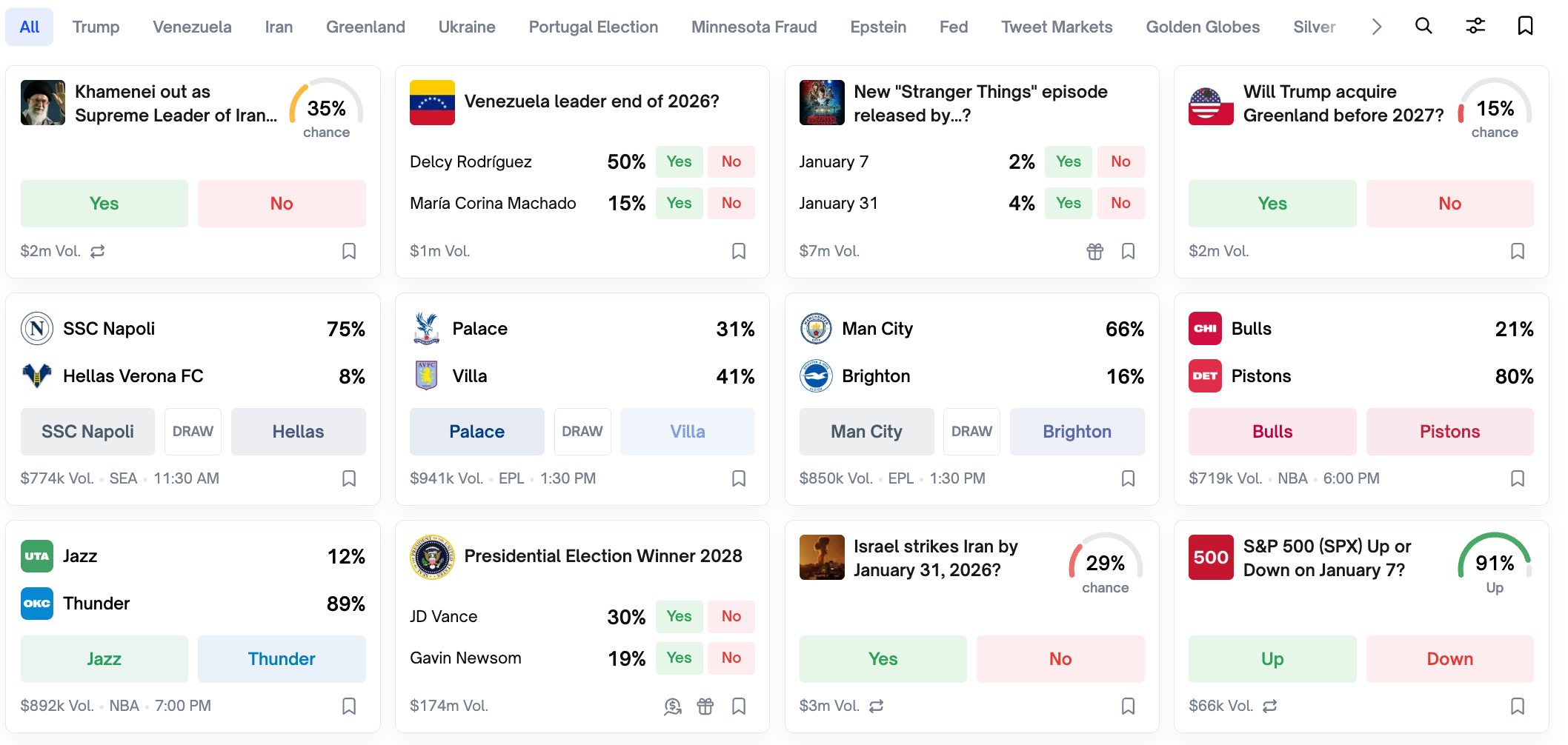 Polymarket landing page as of Wednesday. Source: Polymarket