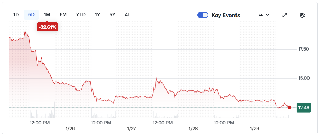BitGo (BTGO) stock price has declined sharply over the past five trading sessions. Source: Yahoo Finance