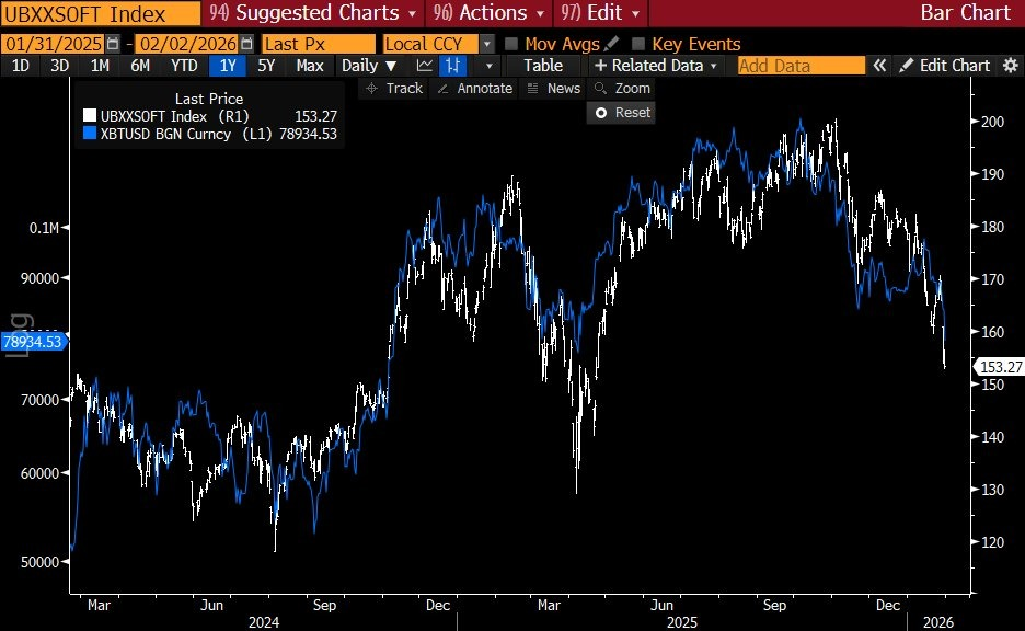 Bitcoin’s decline is mirroring SaaS stocks, proving that it is unlikely a crypto-specific narrative is driving the recent selloff, one analyst argues.