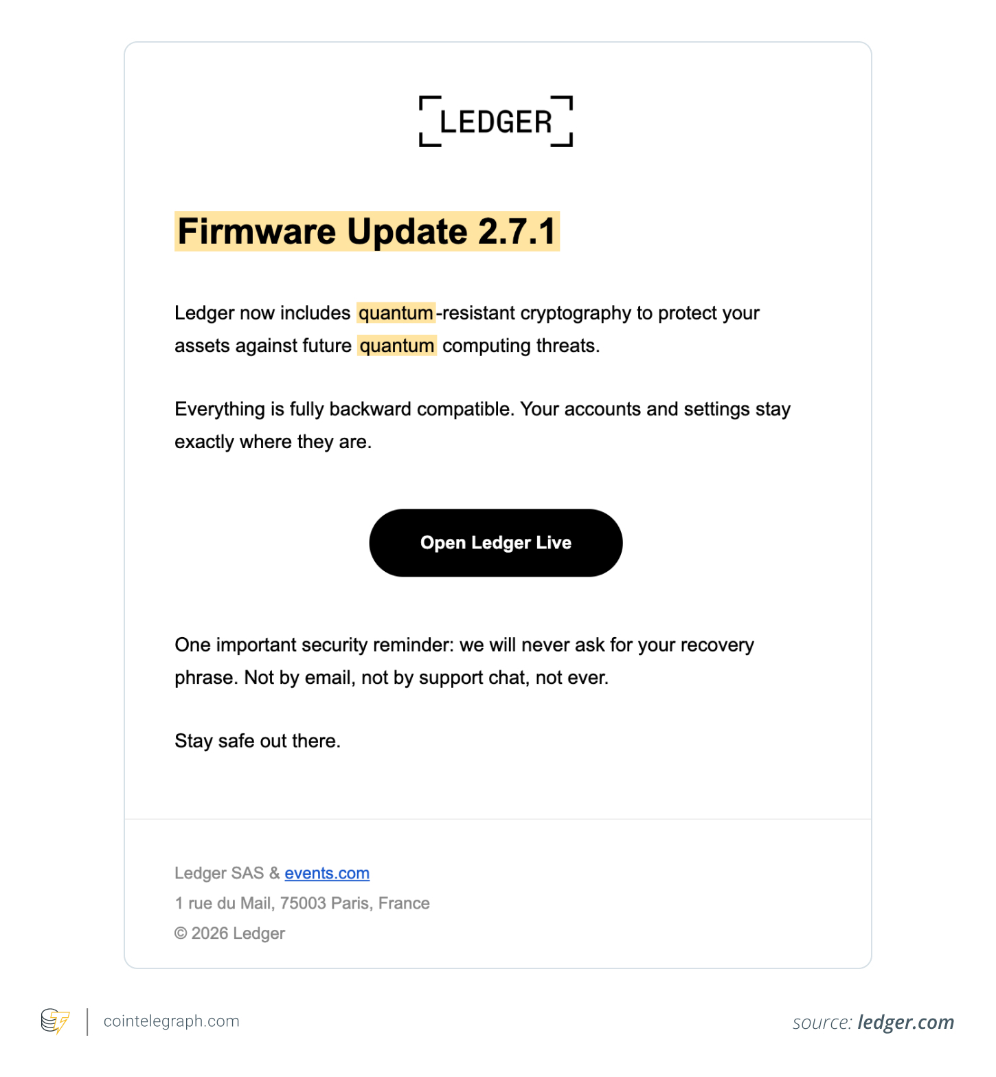 Ledger emphasized that the incident was separate from its devices and self-custody infrastructure. As a result, it did not expose private keys, recovery phrases or account balances.