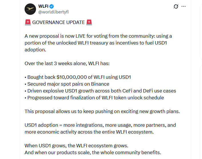 The proposal outlines that the additional supply would help spread “USD1 use cases across select high-profile CeFi & DeFi partnerships,” with increased adoption helping to create more “value capture” opportunities in the WLFI ecosystem.