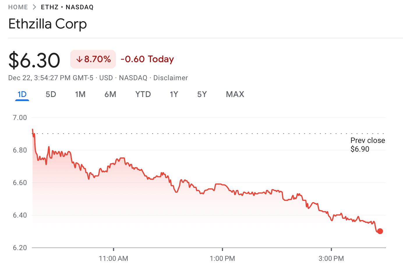Crypto treasury company ETHZilla said in a filing with US regulators that it sold part of its Ether holdings to repay outstanding convertible notes amid a broader market downturn.